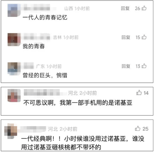 网友纷纷暗示:“一代人的芳华回忆”、“我的第一部手机就是诺基亚”、“还记得用诺基亚砸核桃”。